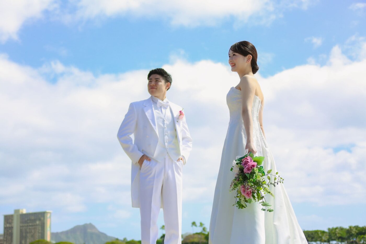 ■プラン:オリジナルビーチフォトプラン(ワイキキタウンフォト)+ビーチウェディングオプション追加